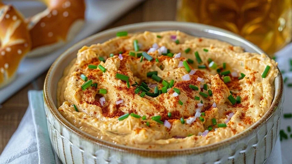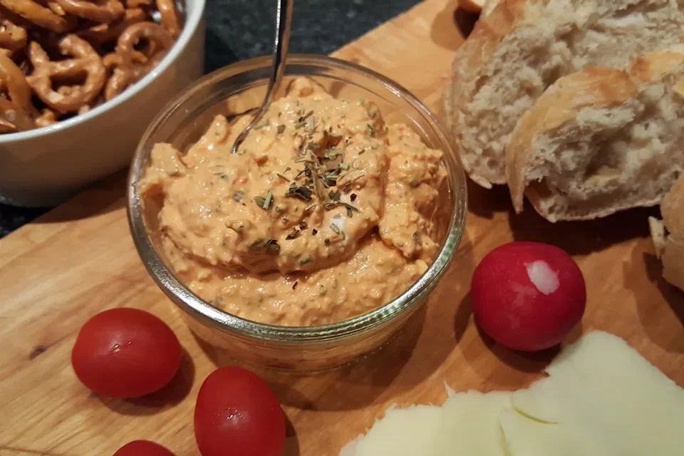 Obatzda Cheddar Mustard Dip Cheddar Dip Pretzel with Butter Pretzel with Cream Cheese and Chives Feta Tomato Spread Charcuterie Board "Brotzeit"